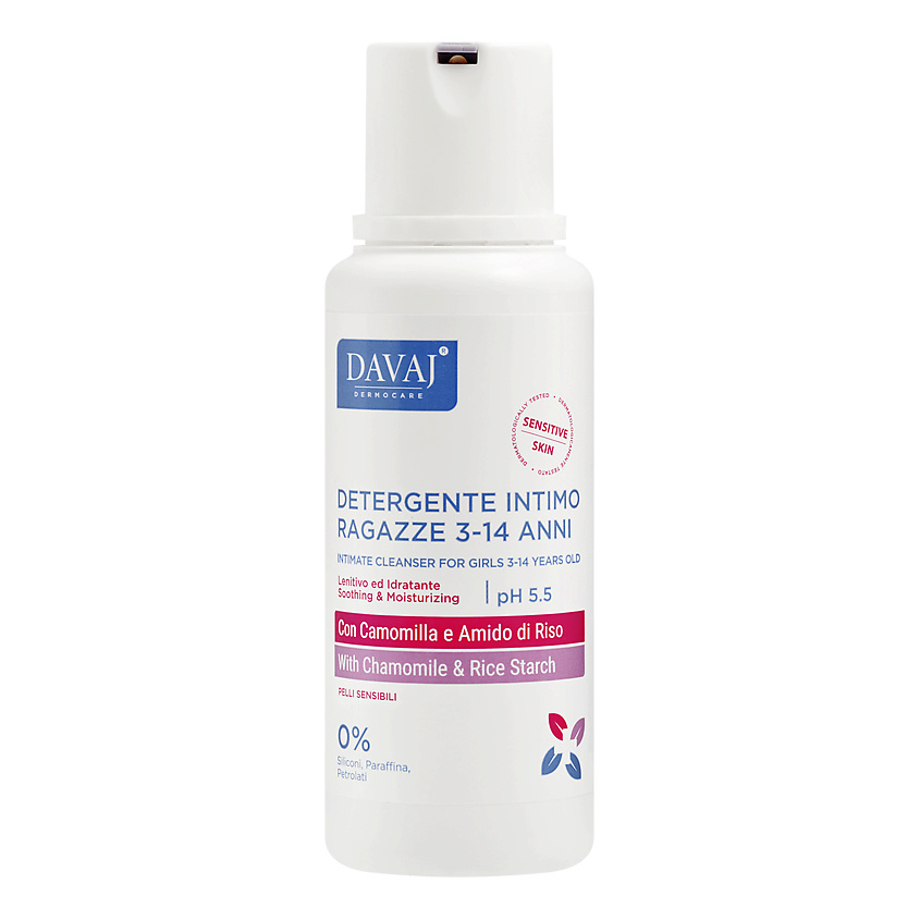 Для всех типов кожи DAVAJ Средство для интимной гигиены детское с ромашкой с 3 лет Intimate Cleanser For Girls