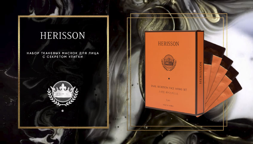 HERISSON Набор тканевых масок против морщин "с секретом улитки" для лица Snail Secretion Face Masks Set