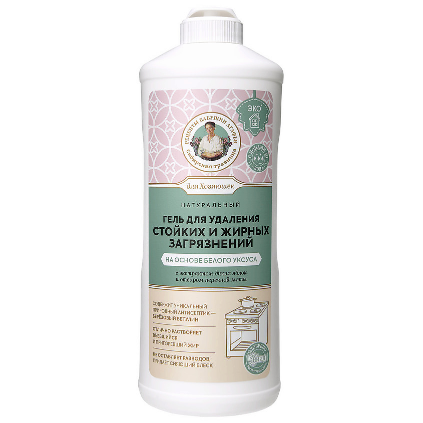 Средство для удаления жира на кухне РЕЦЕПТЫ БАБУШКИ АГАФЬИ Гель для удаления стойких и жирных загрязнений на основе белого уксуса натуральный Для Хозяюшек