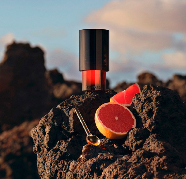 Обсидиан, уголь, земля, скалы, кристаллы, бушующее море, и огненная заря на вулканическом острове. Из недр земли рождается первобытное и могущественное сокровище: Trussardi Primo. Аромат посвящён мужественности и решительности, он мощный, взрывной и одновременно предвестник новой ольфактивной саги. Это рассвет нового дня, полного надежд.